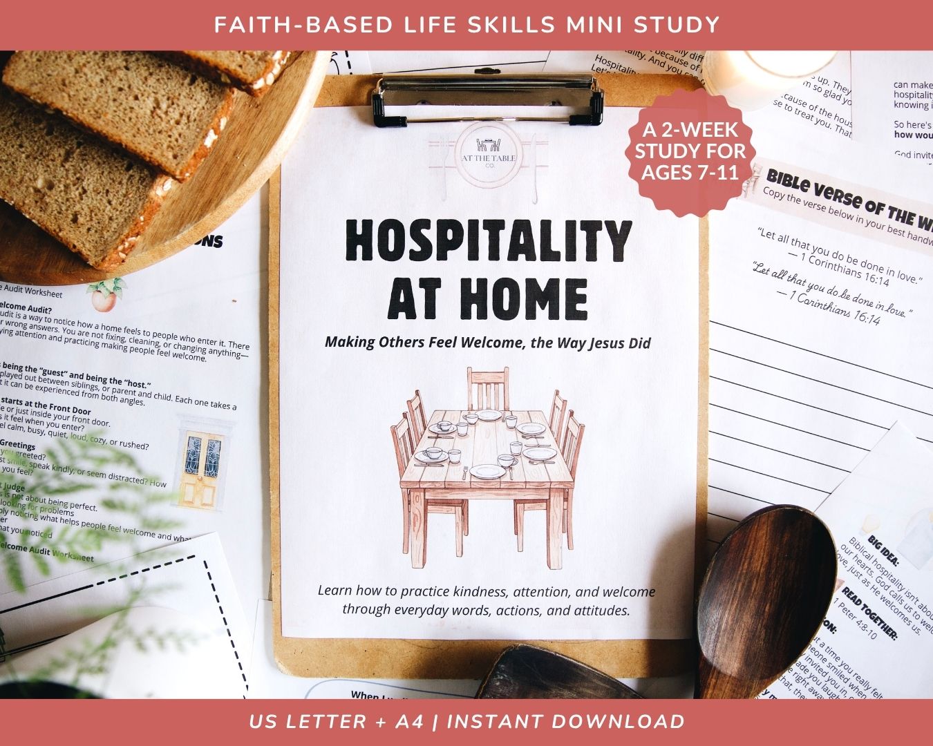 Hospitality at Home – Making Others Feel Welcome, the Way Jesus Did | 2 Week Mini Unit Study for Kids Ages 7-11 | US Letter & A4 Formats