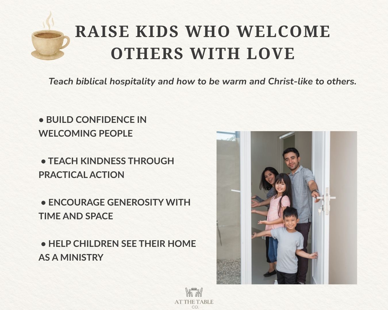 Help your children learn the joy of welcoming others with warmth, kindness, and generosity.