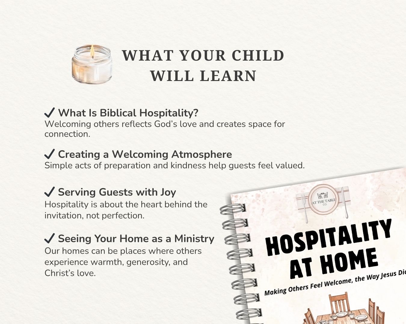 Hospitality at Home is a short, Bible-based unit study that helps kids understand what biblical hospitality looks like in everyday life through Scripture, discussion, and simple activities.
