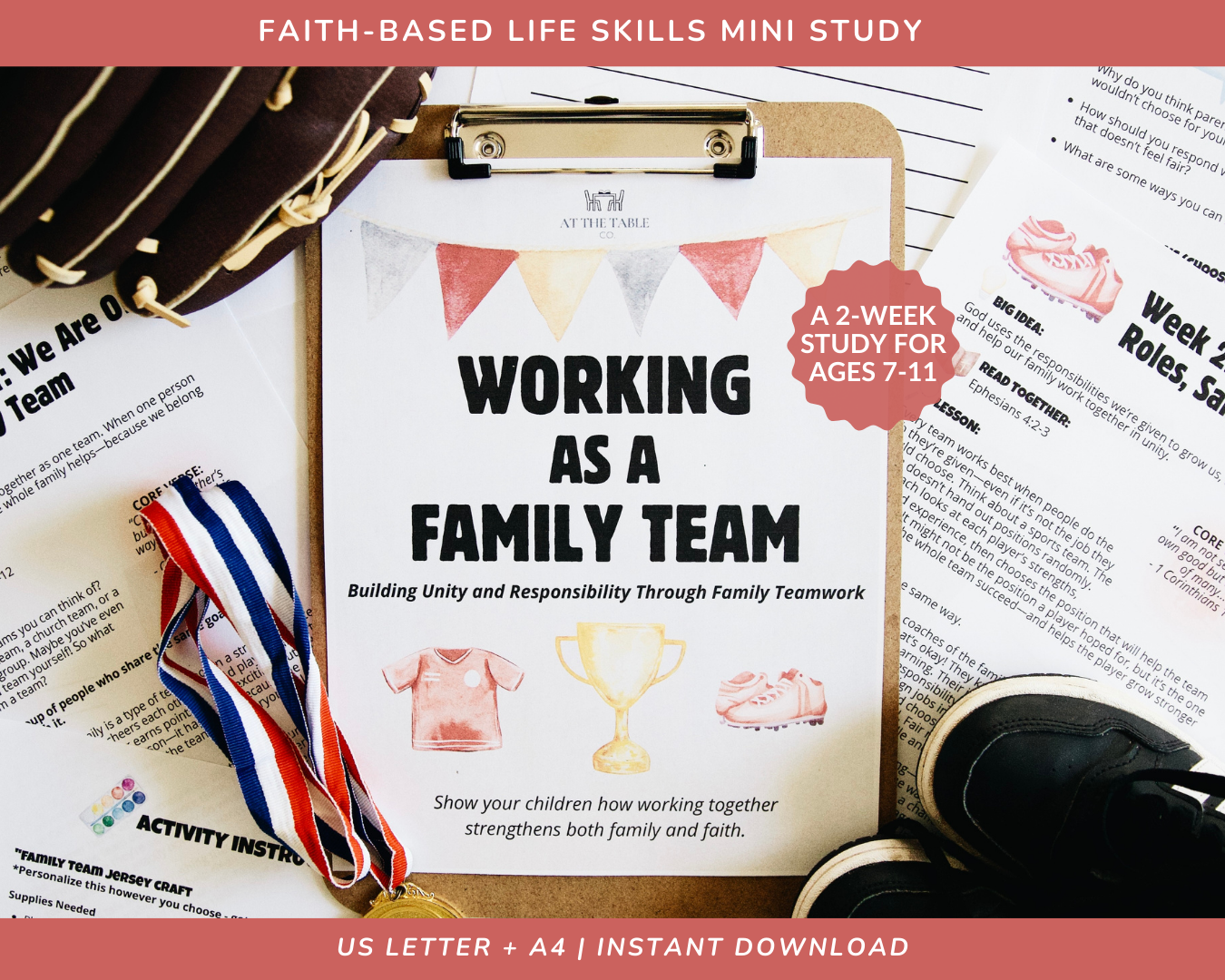 Working as a Family Team – A Christian Life Skills Mini Unit Study for Kids (Ages 7–12) | Printable PDF in US Letter (8.5″ x 11″) and A4 sizes